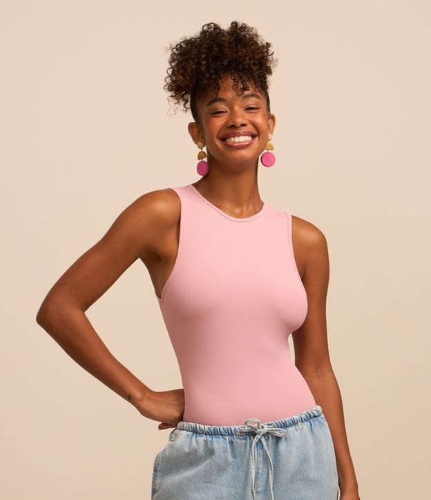 Body feminino sem mangas, confeccionado em malha ribana de poliamida geladinha, com decote redondo e abertura entrepernas.