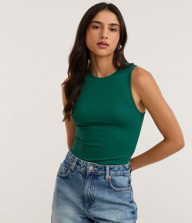 Body sem Manga em Ribana de Poliamida Verde Médio
