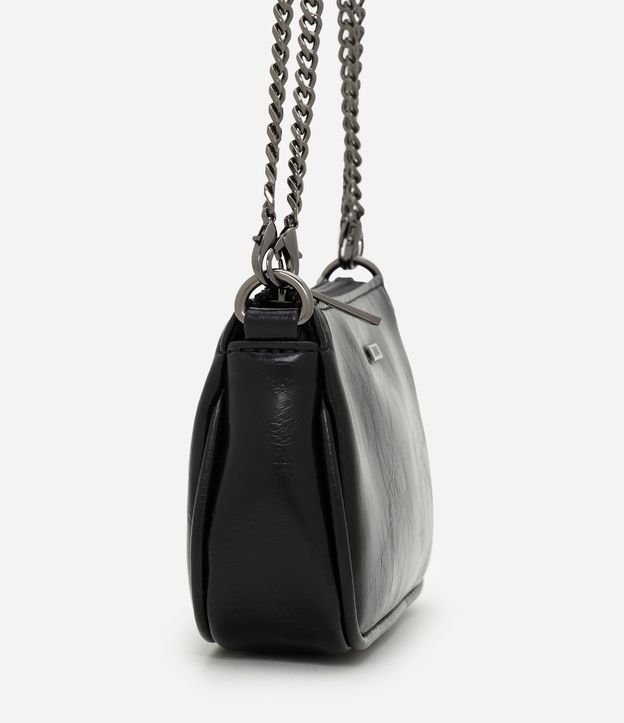 • Bolsa Baguete Pequena em PU com Alça de Corrente Preto 4