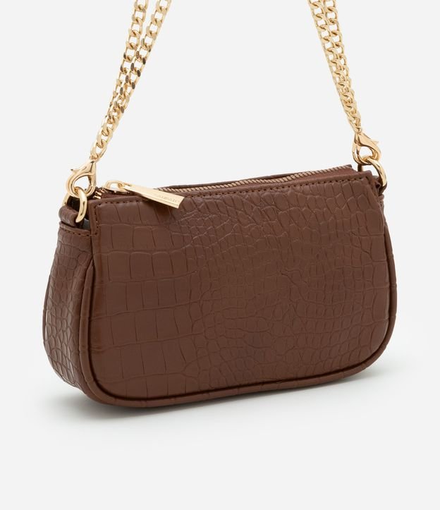 Bolsa Baguete Pequena em PU com Textura Croro com Alça Curta Marrom