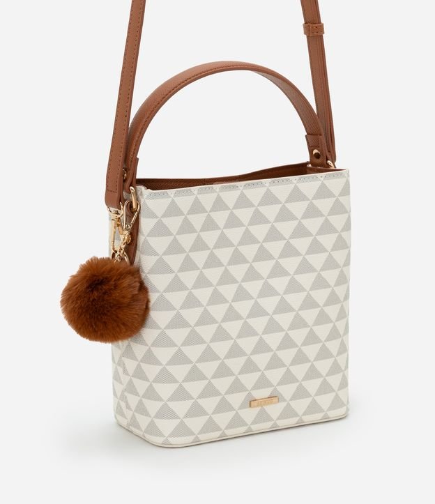 Bolsa Bucket Média em PU Estampa Triângulos com Detalhes