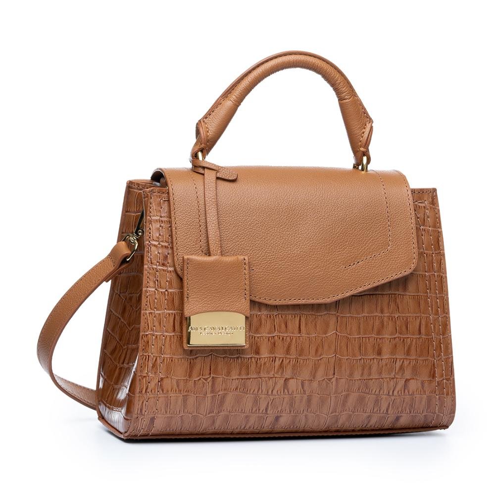 BOLSA COURO LEGÍTIMO MALETA CROCO CARAMELO