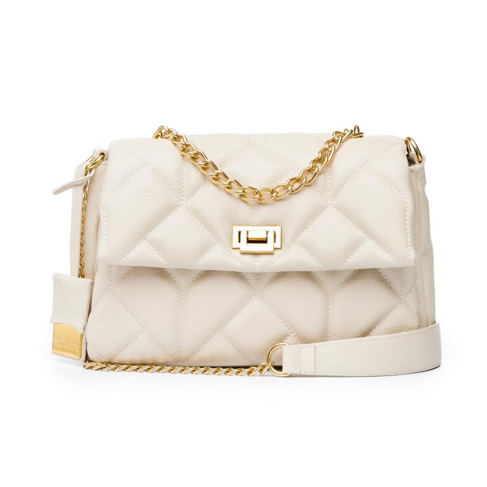 BOLSA EM COURO LEGÍTIMO MATELASSÊ MÉDIA OFF WHITE