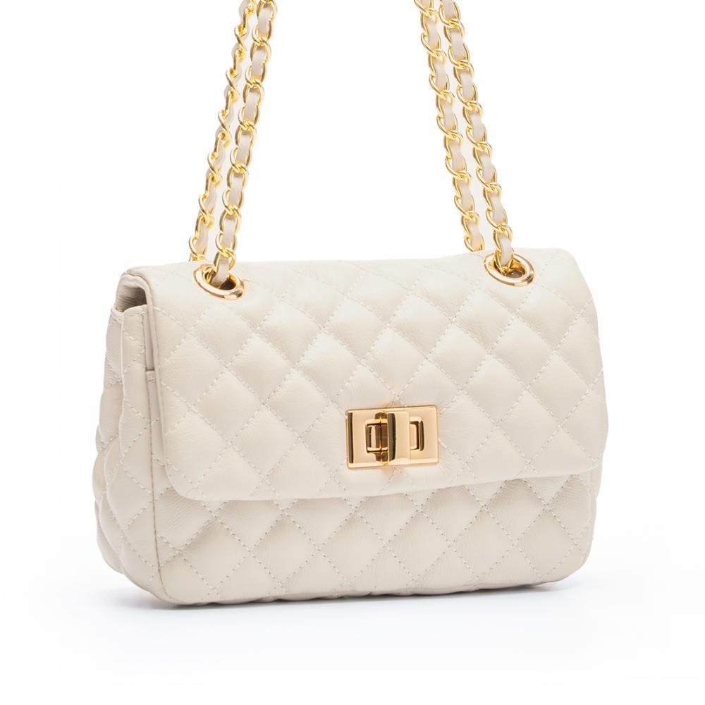 BOLSA COURO LEGÍTIMO MINI QUILTED EM MATELASSÊ OFF WHITE