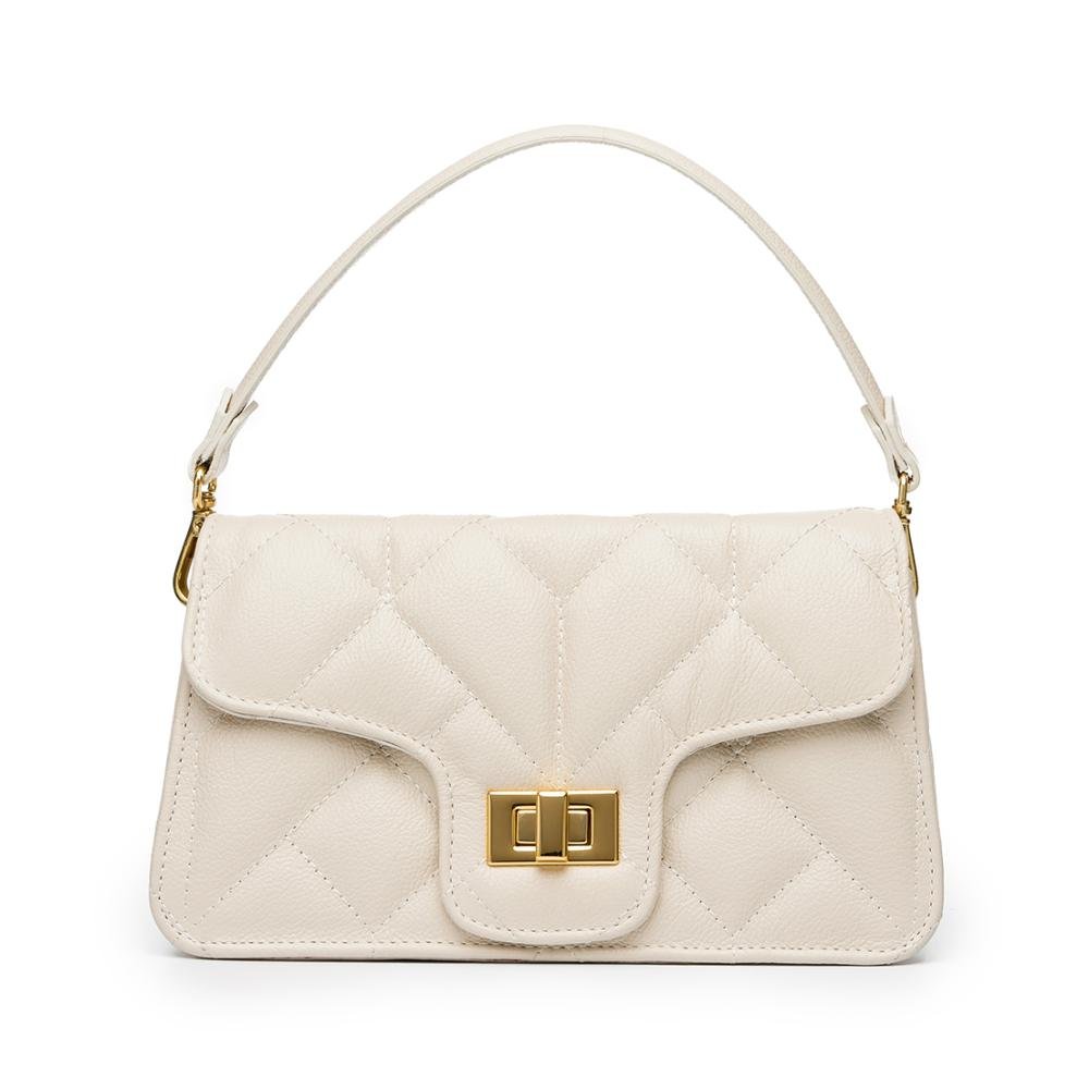 BOLSA COURO LEGÍTIMO RETANGULAR EM MATELASSÊ OFF WHITE