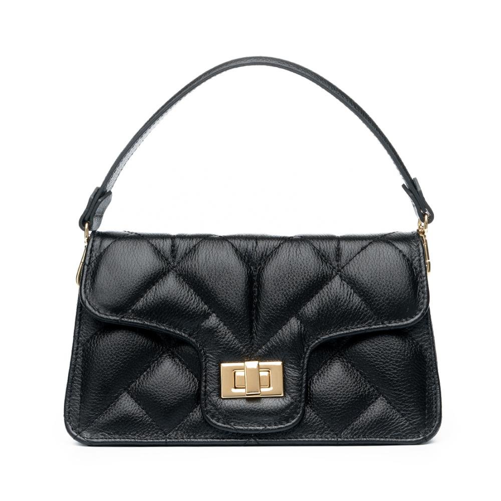 BOLSA COURO LEGÍTIMO RETANGULAR EM MATELASSÊ PRETA