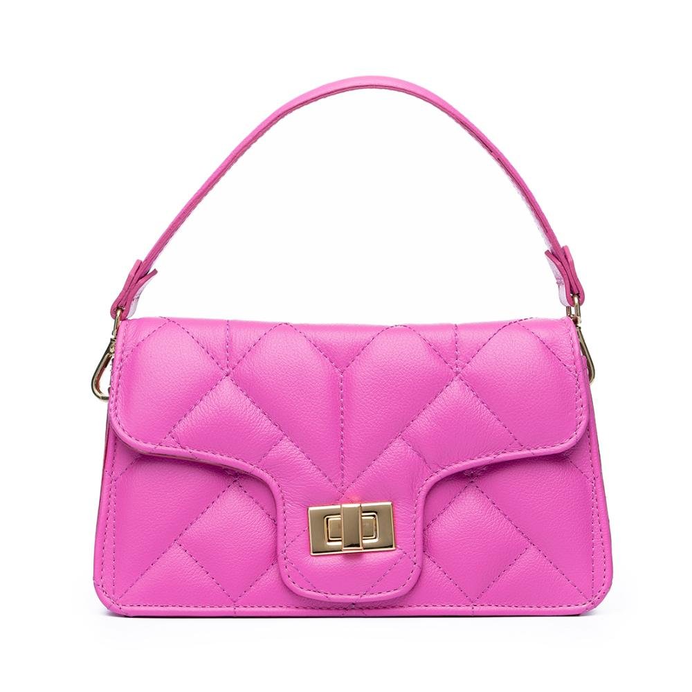 BOLSA COURO LEGÍTIMO RETANGULAR EM MATELASSÊ ROSA
