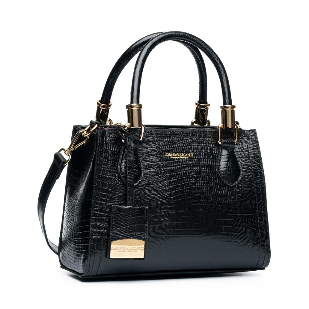 BOLSA COURO LEGÍTIMO TOTE MÉDIA COBRA PRETA