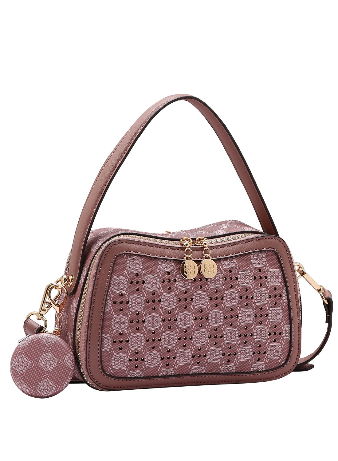 Bolsa Feminina Chenson Original - New Cristal - Alca de Mao - Rose 3485030Bolsa media, alca de mao e alca tiracolo removivel. Duas divisorias, material impermeavel, bolsos internos para pequenos objetos. Destaque: Aplicacao de cristais de Zirconia, verdadeiras joias!Acompanha um charmoso chaveiro de espelhoMedidas aproximadas:22 cm de largura14 cm de altura10 cm de profundidadeInformacoes Adicionais:- Alca de Mao: Sim- Alca tiracolo: Sim (removivel e regulavel)- Alca de Ombro: Nao- Divisorias: 2- Bolsos: 2 - 1 Bolso interno com ziper - 1 Bolso interno para pequenos objetos- Metais dourados- Material: Poliuretano- Marca: Chenson - Peso: 0,510 gr.- Cor: RoseIMPORTANTE:- Produto original Chenson- Garantia de fabrica- Envio imediato- Pecas a pronta entrega- Garantia do fabricante: 3 meses contra defeitos de fabricacao, a partir da data da compra CUIDADOS:- Guarde em um local seco e arejado evitando locais umidos.- Evite colocar excesso de peso no produto para nao forcar os ziperes e costuras.- Proteja os objetos cortantes e/ou pontiagudos evitando o contato direto com o produto.- Evitar altas temperaturas.DICAS DE LIMPEZA:- Para a limpeza utilize apenas pano umido com sabao neutro.- Nao mergulhar na agua e nao utilizar componentes quimicos, solventes ou alvejantes.- Nao deixar de molho e secar a sombra.