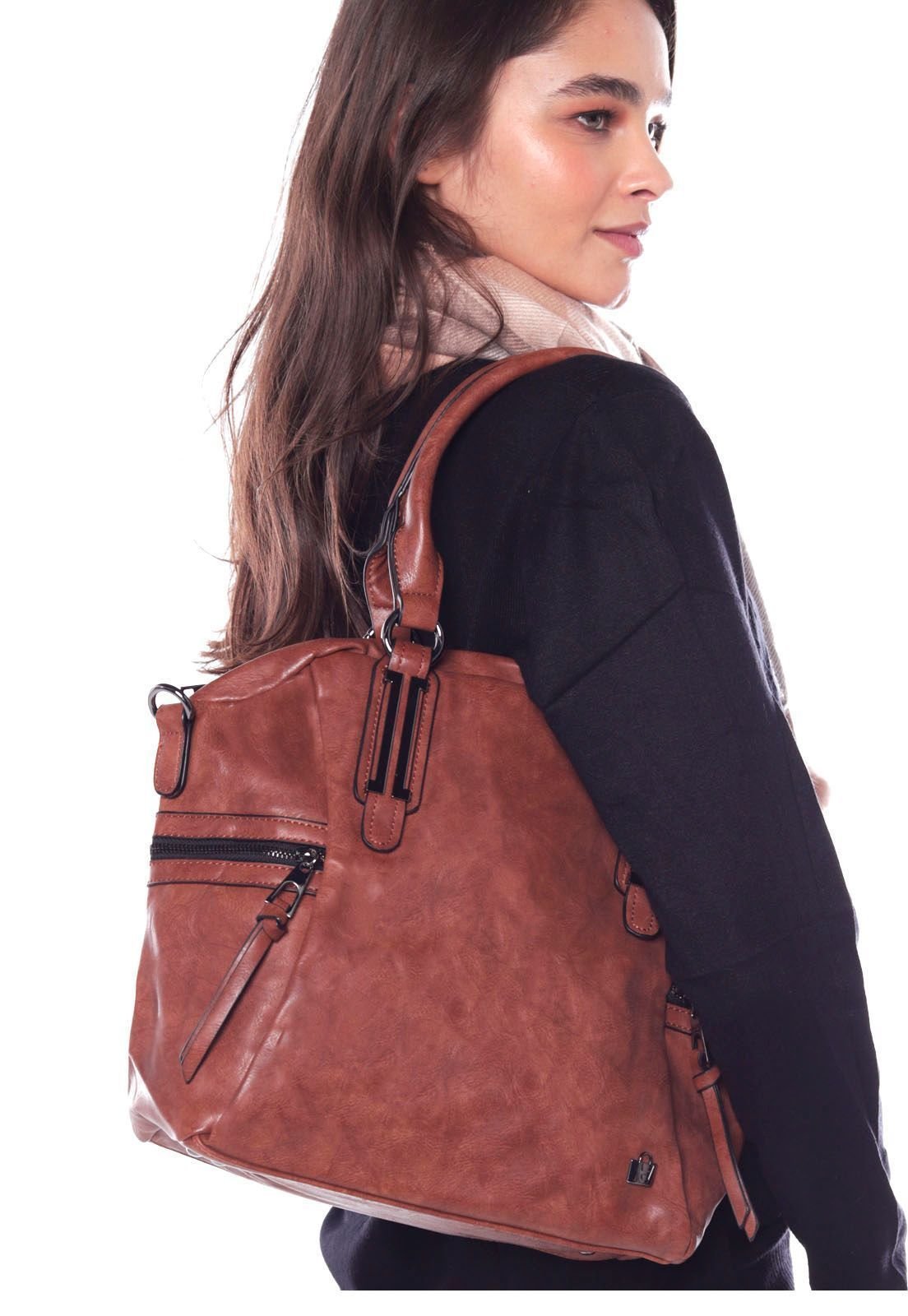 Bolsa Feminina Grande Marrom de Ombro com Zíper Sob