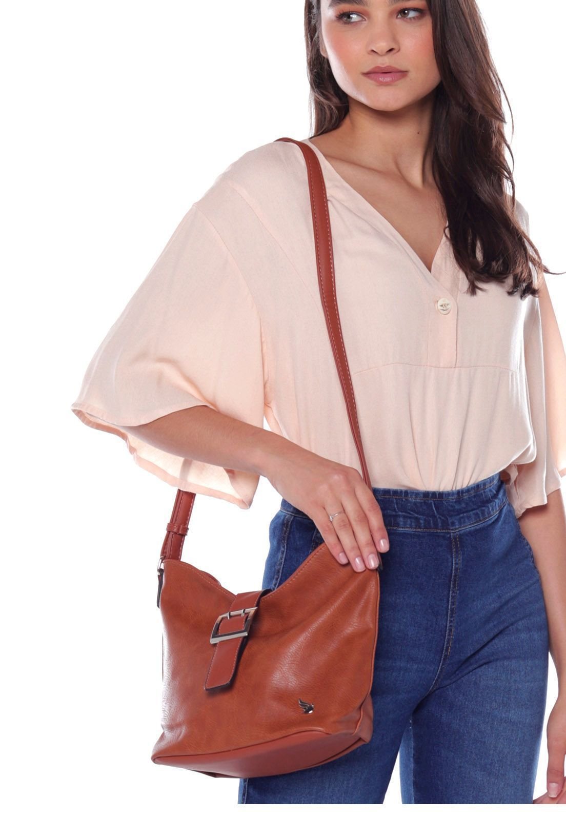 Bolsa Feminina Transversal Média com Zíper Sob Caramelo