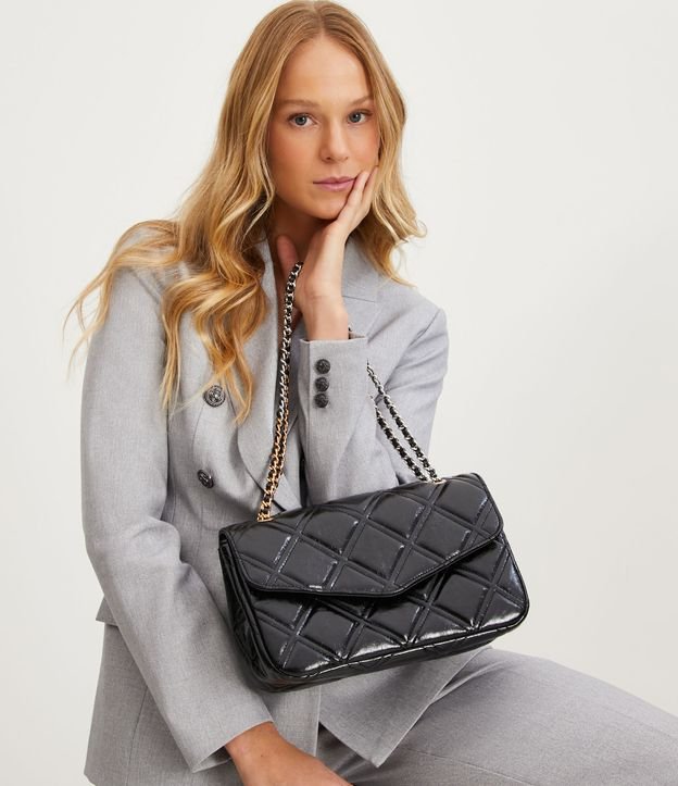 Bolsa Grande em Pu com Alça de Corrente e Textura Melassê