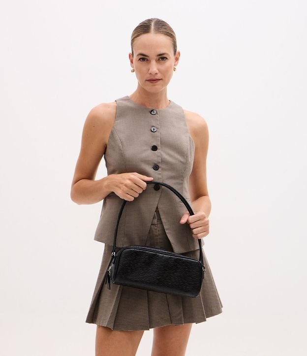 Bolsa Média Retangular com Textura e Alças Duplas Preto