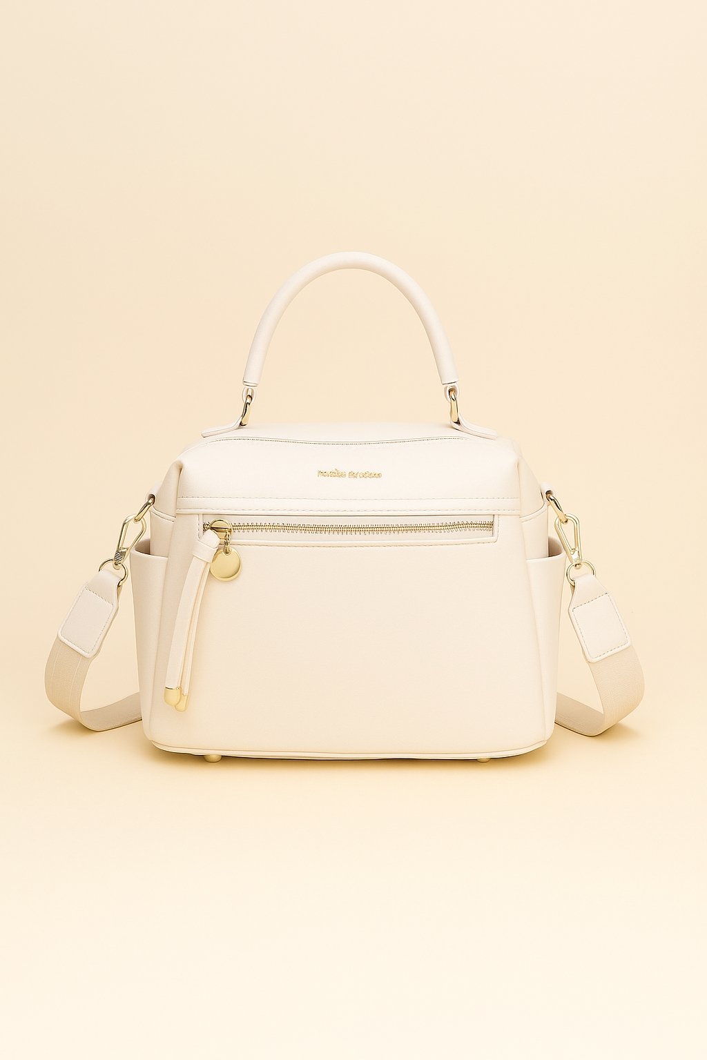 O modelo conta com bolso frontal com ziper metalico dourado, perfeito para guardar pequenos objetos com seguranca, alem do compartimento principal espacoso para acomodar carteira, celular, chaves e itens essenciais. A alca longa ajustavel permite o uso transversal ou no ombro, garantindo conforto e praticidade em qualquer ocasiao.