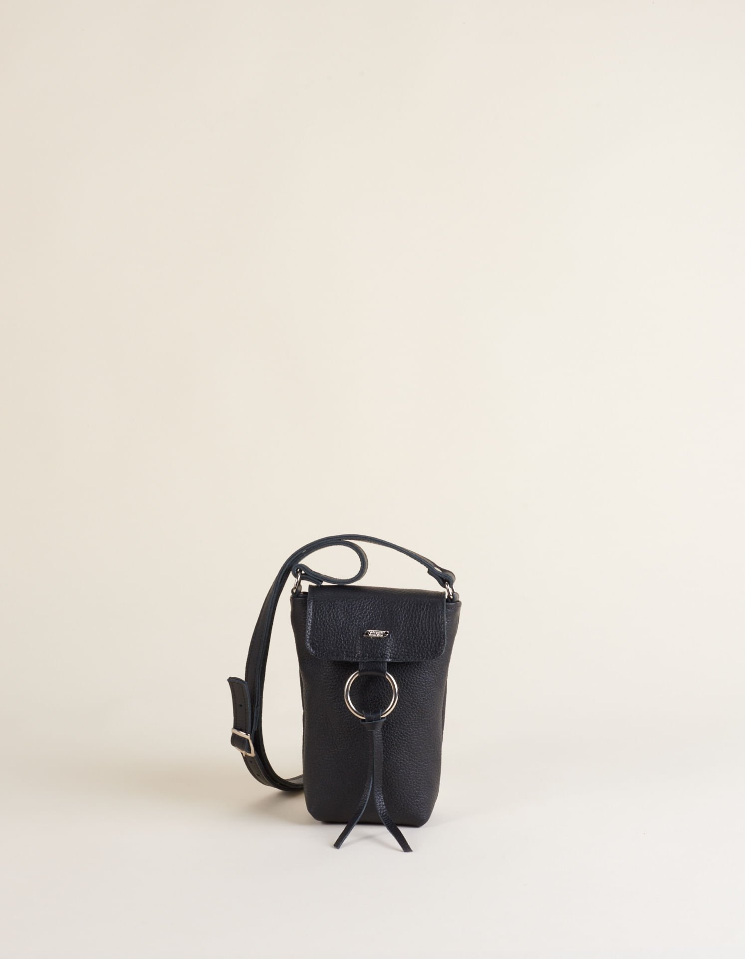 Bolsa Pequena Couro Detalhe Argola Metal - Preto