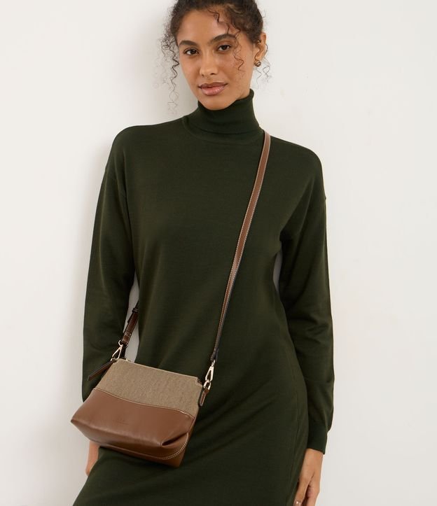 Bolsa Pequena em PU com Detalhes Metalizados Marrom