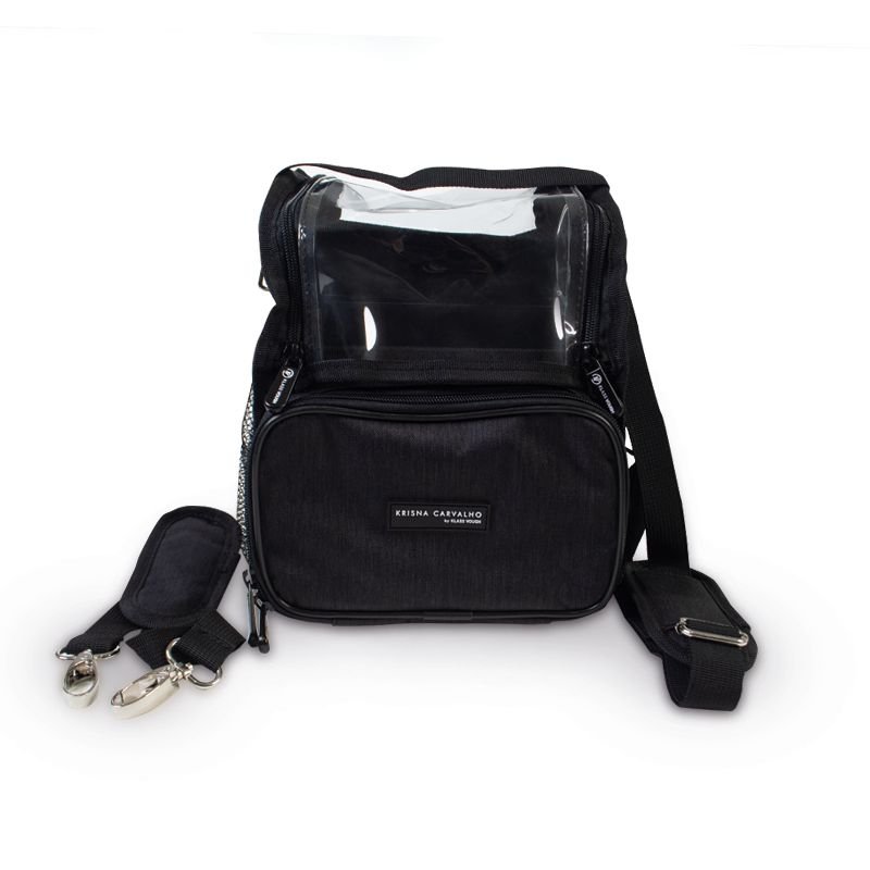 Bolsa Profissional Organizadora Krisna - Klass Vough (HN0325) A Klass Vough em parceria com um dos maiores maquiadores do Brasil Krisna Carvalho, tras para voce essa incrivel bolsa organizadora. Possui suporte interno de acrilico com 6 divisorias (removiveis), duas alcas para levar na mao ou a tiracolo, 2 bolsos telados nas laterais e 3 no compartimento frontal. Ideal para ser utilizado em bancadas, sets ou backstages, pode ser encaixada nas hastes da mala de bordo. Todos os necessaires sao confeccionados com Nylon de alta qualidade e Vinyl Cristal, um PVC transparente de alta resistencia que promove maior durabilidade e facilidade durante a higienizacao. *Acessorios vendidos separadamente. Dimensoes: 20X17X23cm