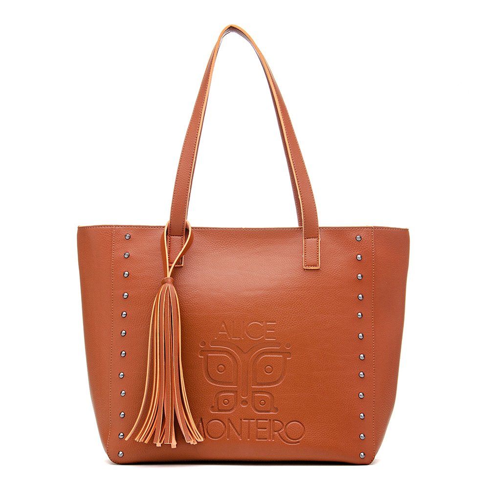 Bolsa Sacola Casual Basica Alice Monteiro com Zíper e Alça de Ombro Marrom