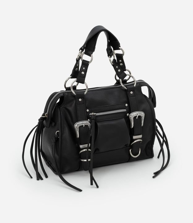 Bolsa Satchel Boho Média com Tiras e Fivela