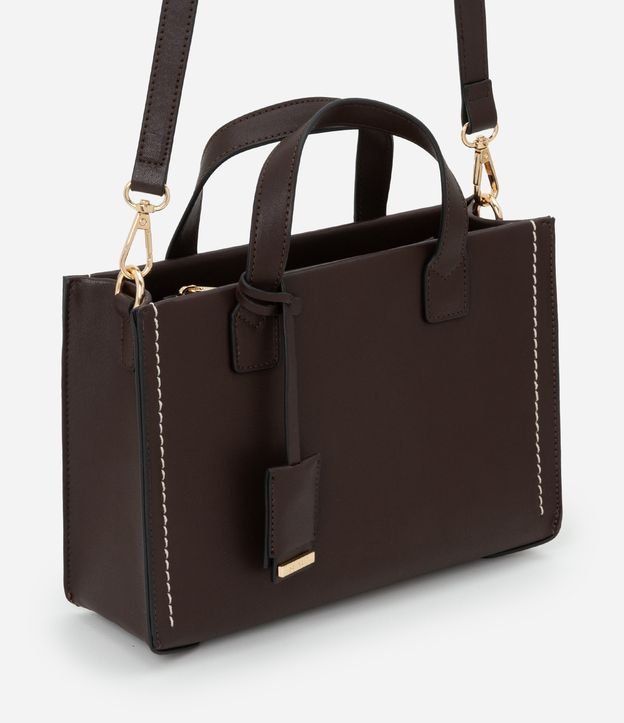Bolsa Satchel Média com Alça Longa e Detalhes Metalizados Marrom