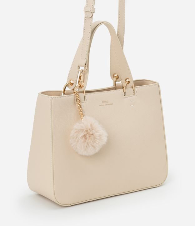 Bolsa Satchel Média com Alça Removível e Chaveiro Pompom Bege