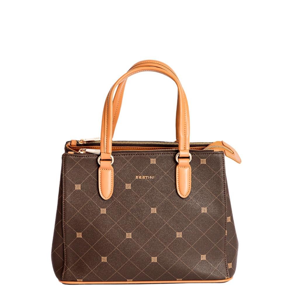 Bolsa Satchel Média Sestini Monograma - Marrom