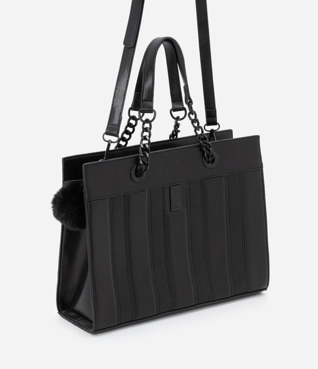 Bolsa Satchel Transversal Grande com Textura Croco e Pompom