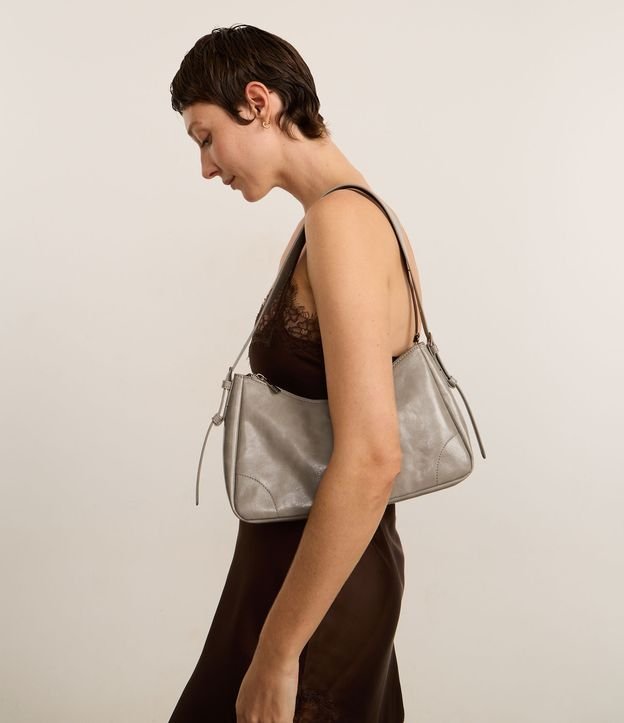 Bolsa Shoulder em PU com Alça de com Fivela Cinza