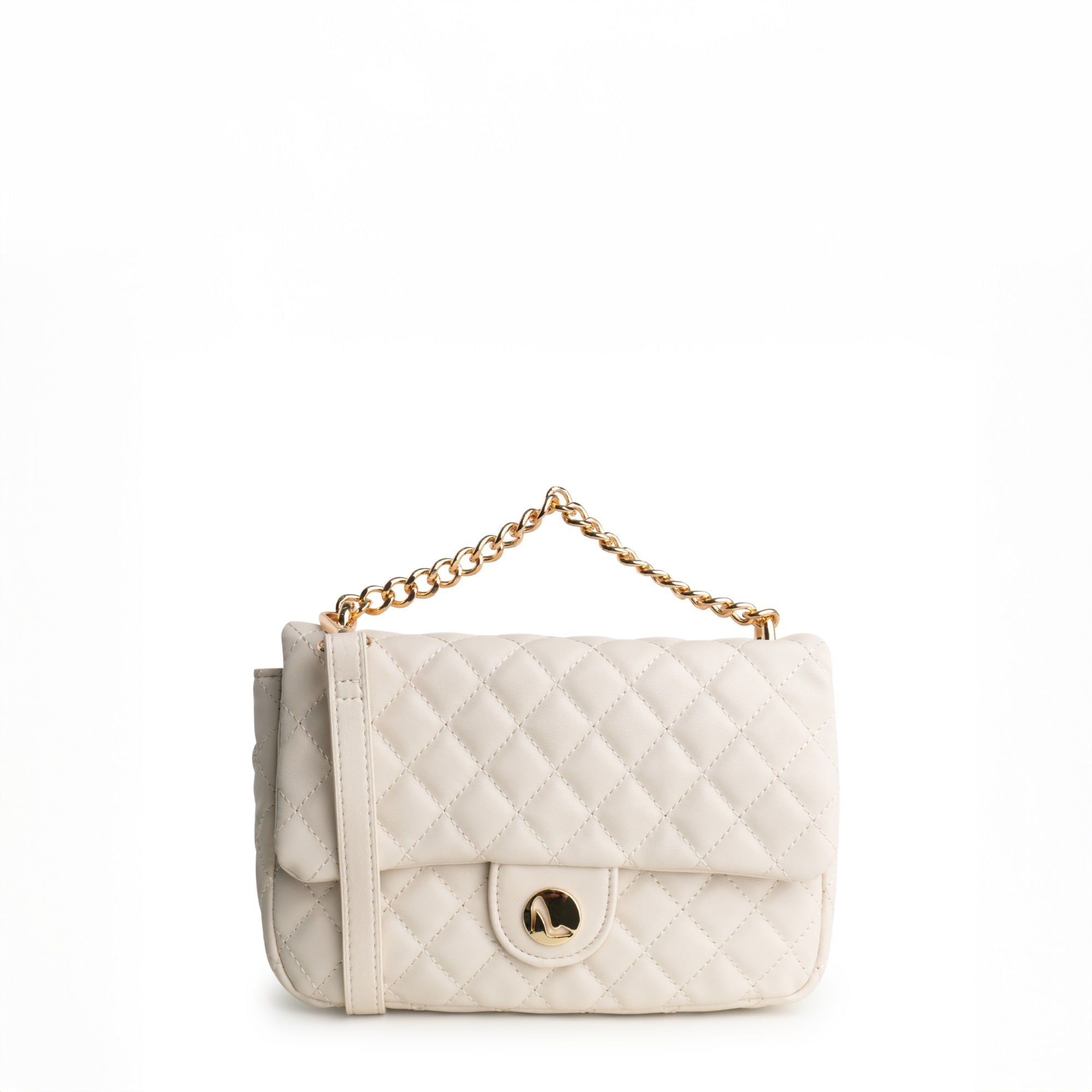 Bolsa Tiracolo Nude Manteiga com Costura Matelasse e Alça Corrente SALICA_3