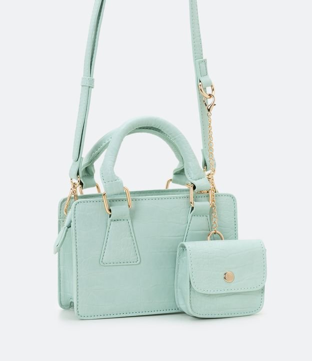 Bolsa Transversal Baguete com Alça de Mão e Porta Moeda Textura Croco