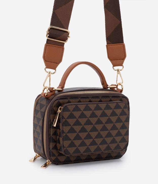Bolsa Transversal Boxy com Alça de Mão e Estampa de Triângulos