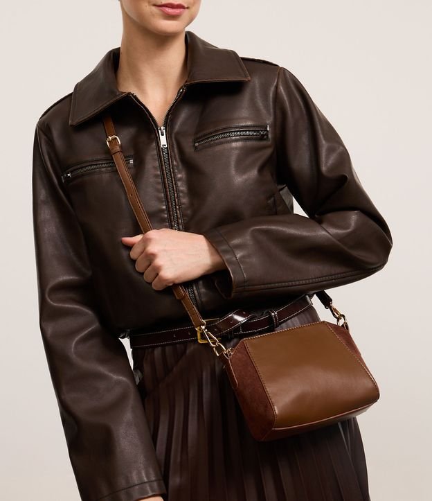 Bolsa Transversal com Fechamento por Zíper Marrom Escuro