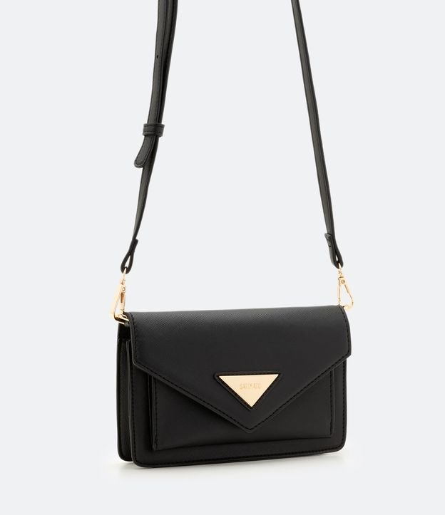 Bolsa Transversal com Tampa e Plaquinha em Triangulo Aplicada