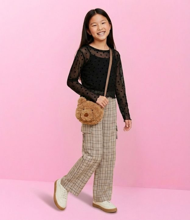 Bolsa Transversal Infantil em Formato de Urso Peludinho - Tam U