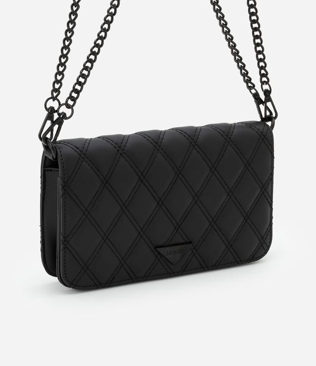 Bolsa Transversal Pequena com Textura Matelassê e Alça Corrente