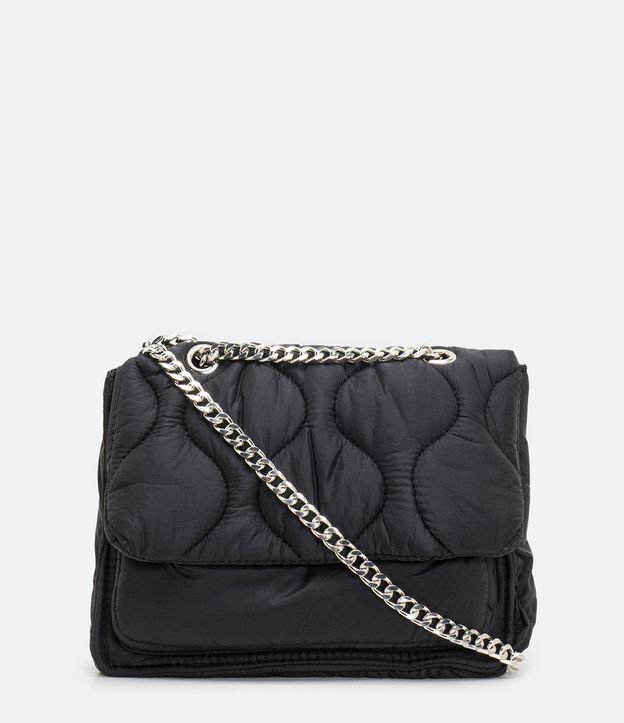 Bolsa Transversal Puffer com Textura Matelassê e Alça de Corrente