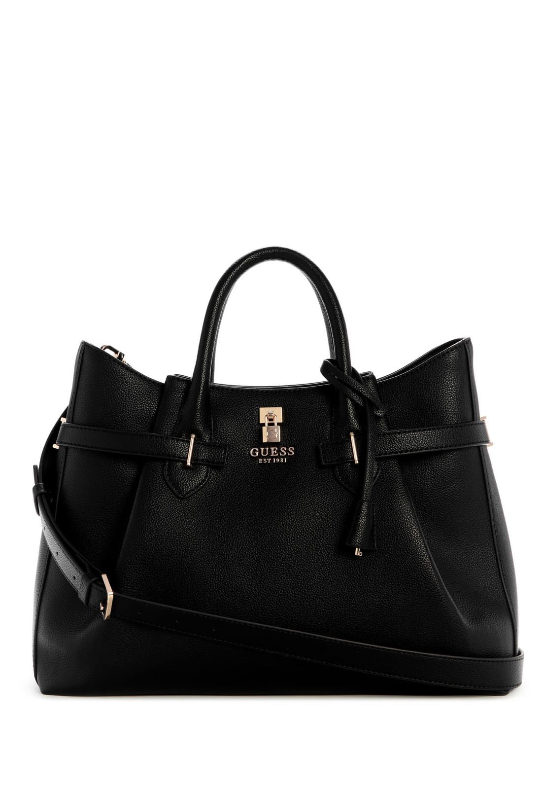 A Bolsa Yesba Girlfriend Satchel Guess combina estilo e funcionalidade para o dia a dia. Produzida em material de poliuretano, apresenta ferragens douradas com o logo Guess em destaque na parte frontal. Conta com duas alças: uma de mão e outra transversal ajustável com fivela, além de um chaveiro decorativo preso à alça de mão que adiciona charme ao design. Possui bolso externo traseiro com fechamento em zíper e compartimento interno forrado em tecido, com bolsos e organizadores internos para manter seus itens bem distribuídos. O fechamento superior em zíper garante praticidade e segurança, tornando esta bolsa feminina ideal para looks modernos e versáteis.