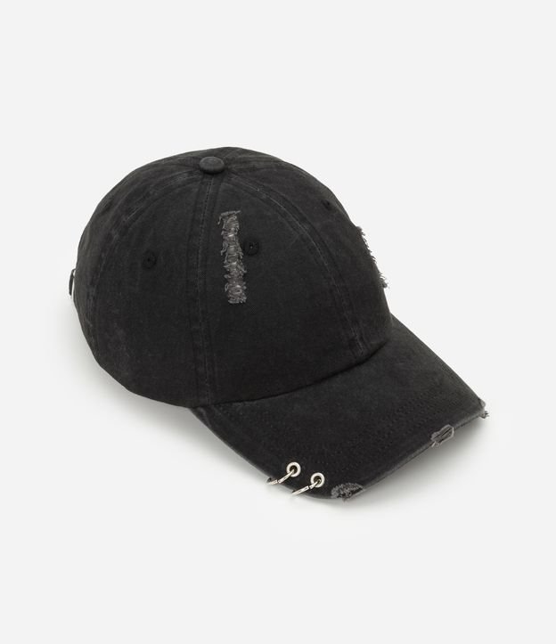 Boné Aba Curva em Sarja com Argolas Preto
