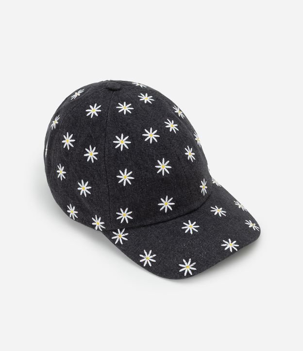 Boné Aba Curva em Sarja com Bordado de Margaridas Preto
