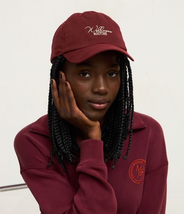 Boné Aba Curva em Sarja com Bordado Wellness Routine Vermelho
