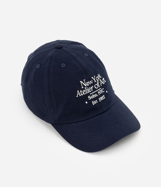 Boné Aba Curva em Sarja com Lettering New York Soho Bordado Azul Marinho