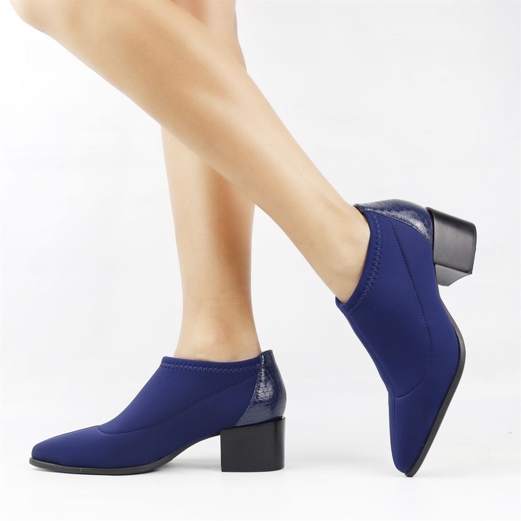 Bota Cano Baixo Salto Bloco Lycra Azul
