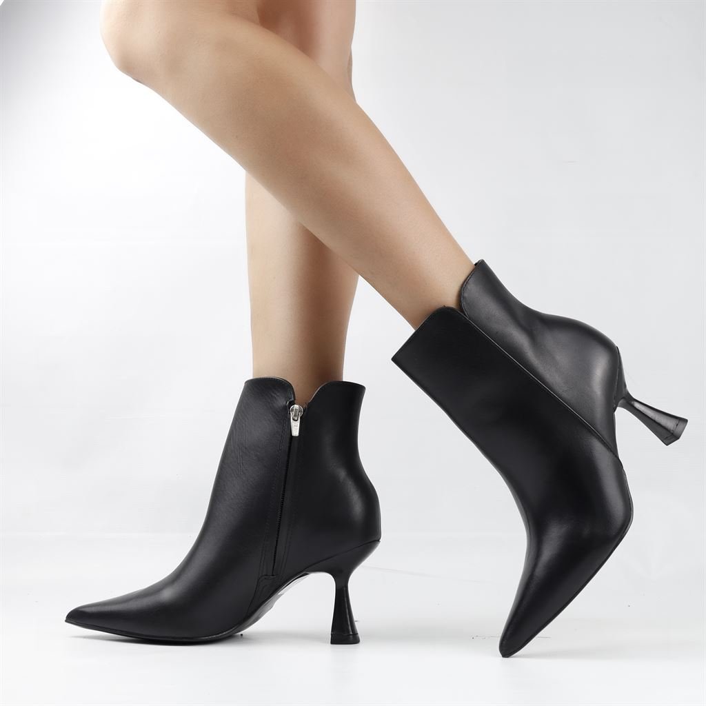 Bota Cano Baixo Salto Fino Couro Preto