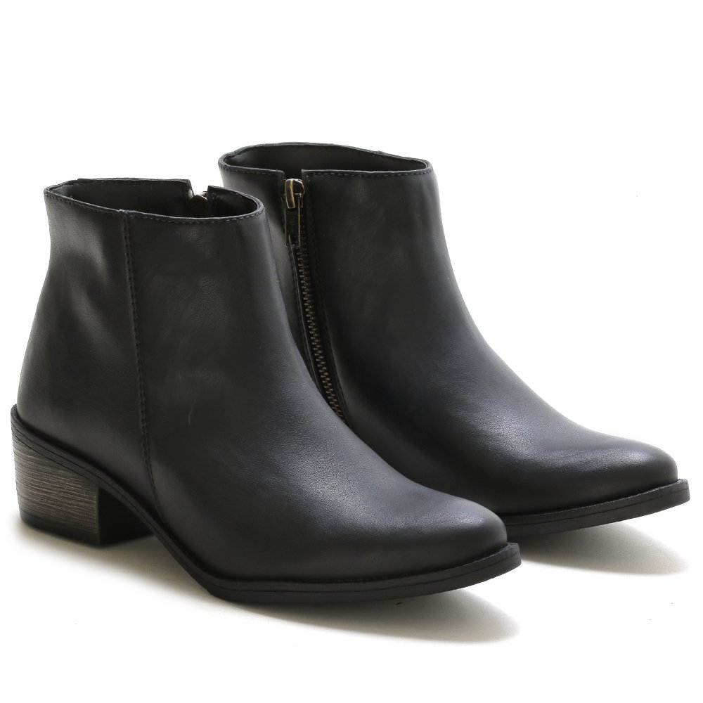 Bota Cano Curto Autem Originals Casual com Zíper Salto Quadrado e Bico Redondo Preto
