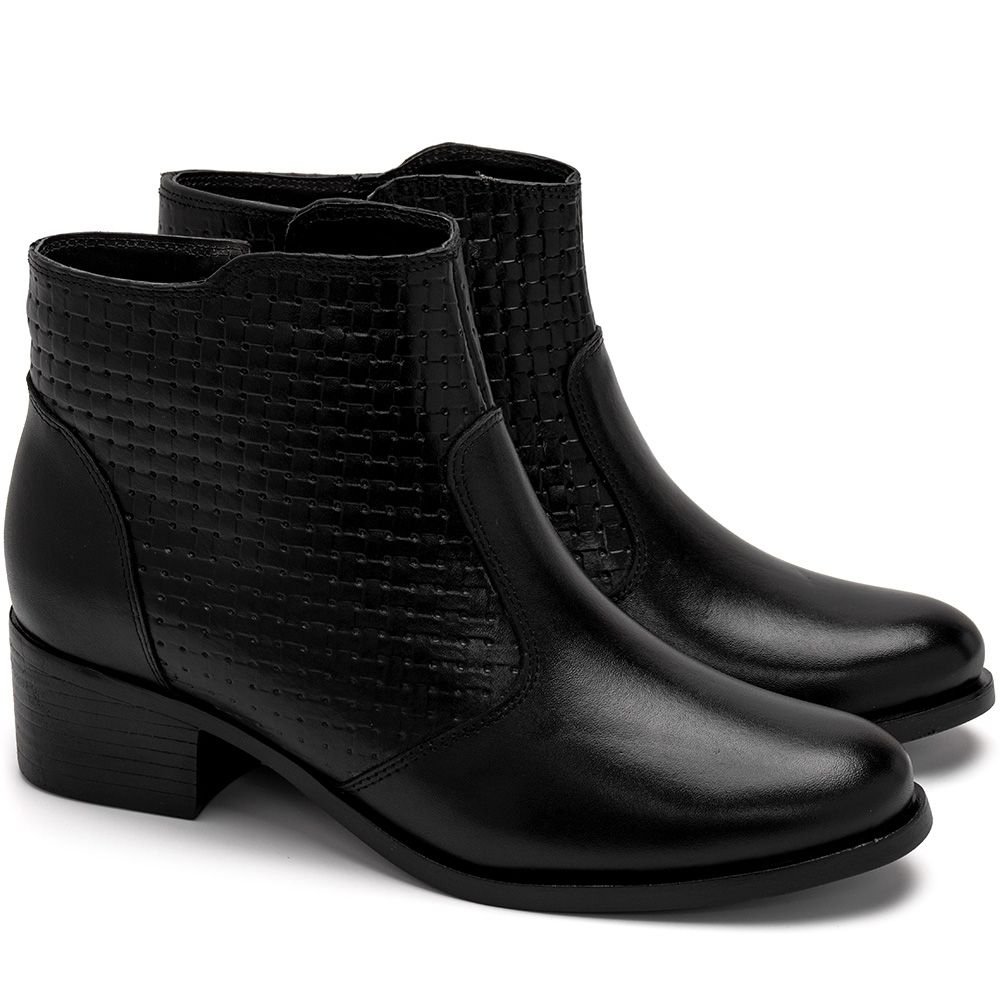Bota Cano Curto com Textura em Couro First Concept Casual Sola Borracha