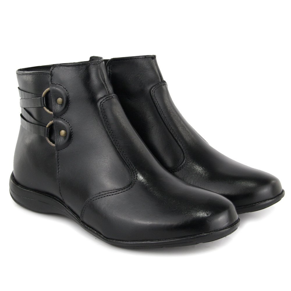Bota Cano Curto em Couro Pires Shoes com Zíper Detalhe em Tiras e Metal Preto