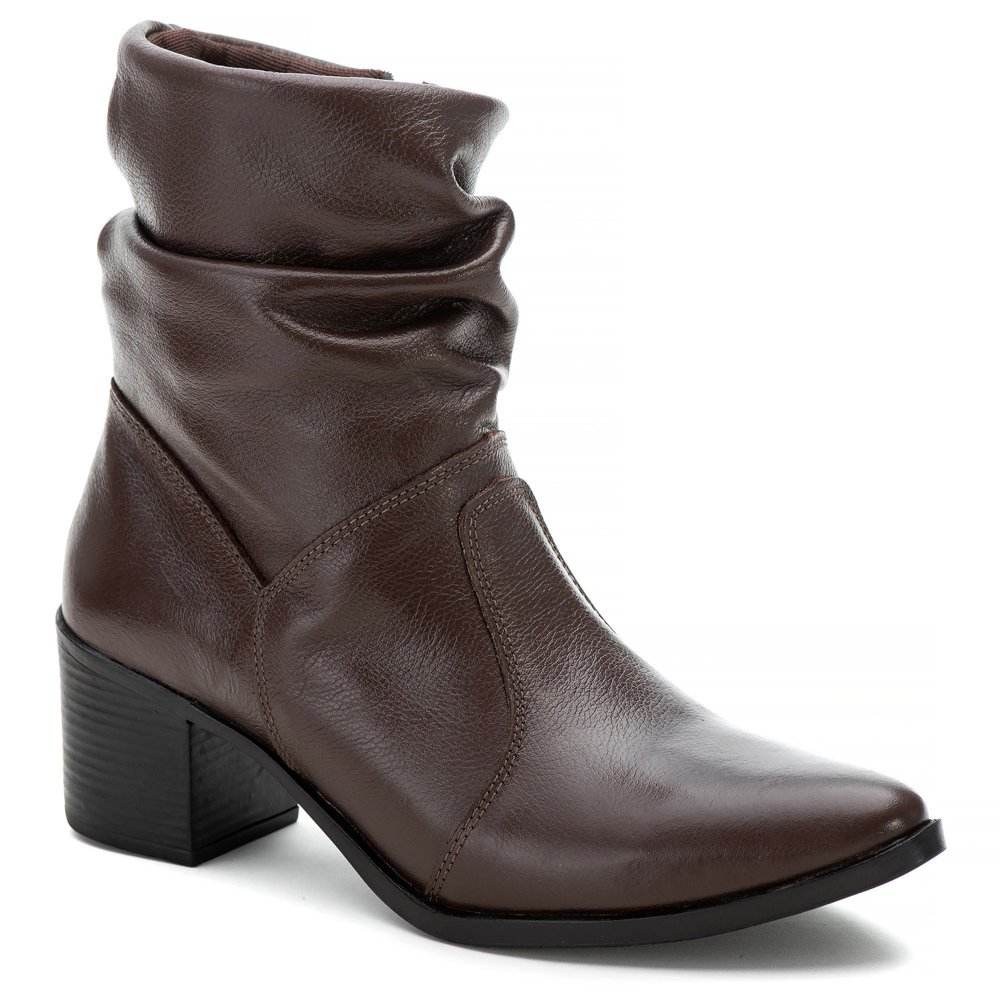 Bota Cano Curto Yoyo Store com Zíper Bico Fino Salto Grosso e Sola Borracha
