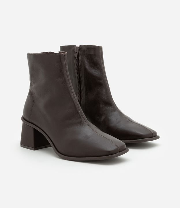 Bota Cano Médio em Couro com Bico Quadrado e Salto Bloco