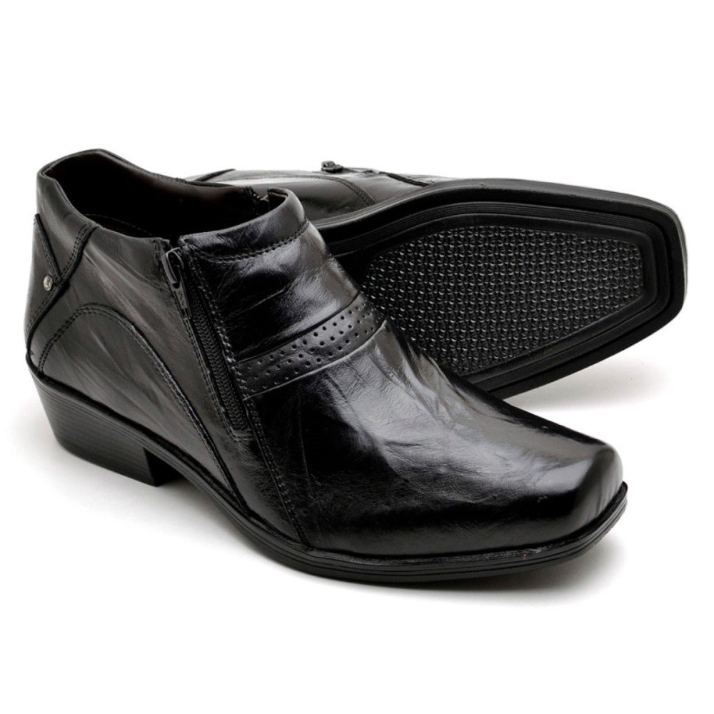 Bota Casual em Couro Autem Originals Zíper Detalhes em Costura e Bico Quadrado