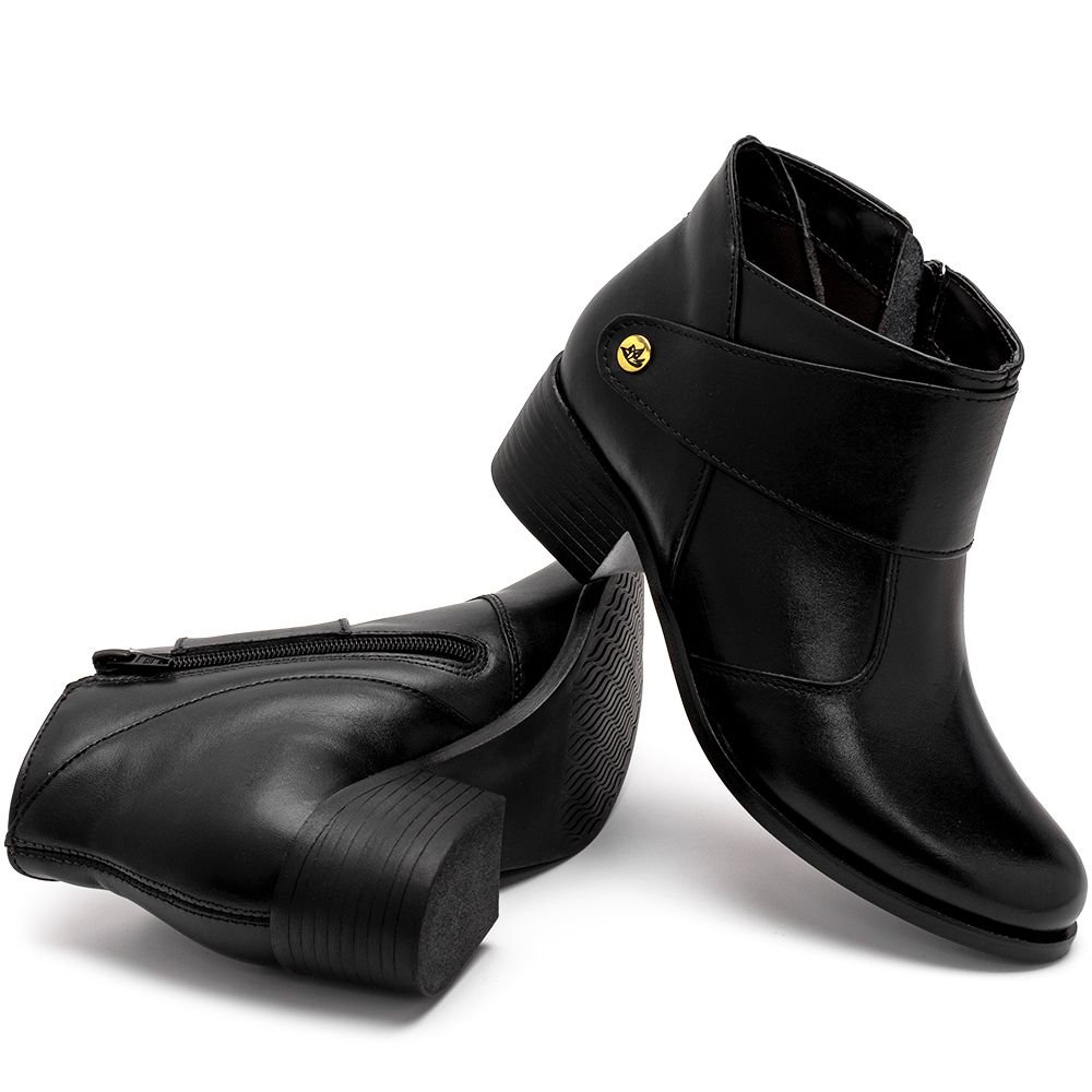 Bota Casual First Concept Cano Curno em Couro com Detalhe e Salto Quadrado